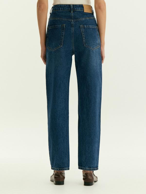 Джинсы в синем цвете визуально вытягивают силуэт, делают его плавнее. Посадка мom fit удачно смотрится на разных типах фигуры. Плотный деним с практичным составом комфортно садится, хорошо сохраняет форму, устойчив к износу и меньше мнётся. Джинсы сочетаются с любым базовым и нарядным низом.