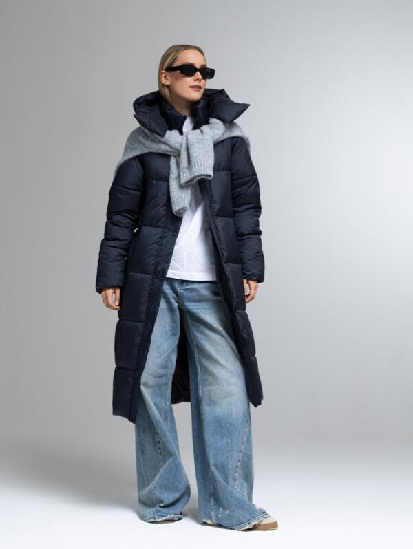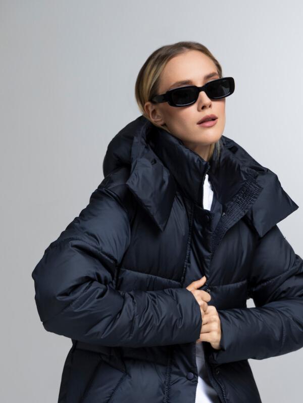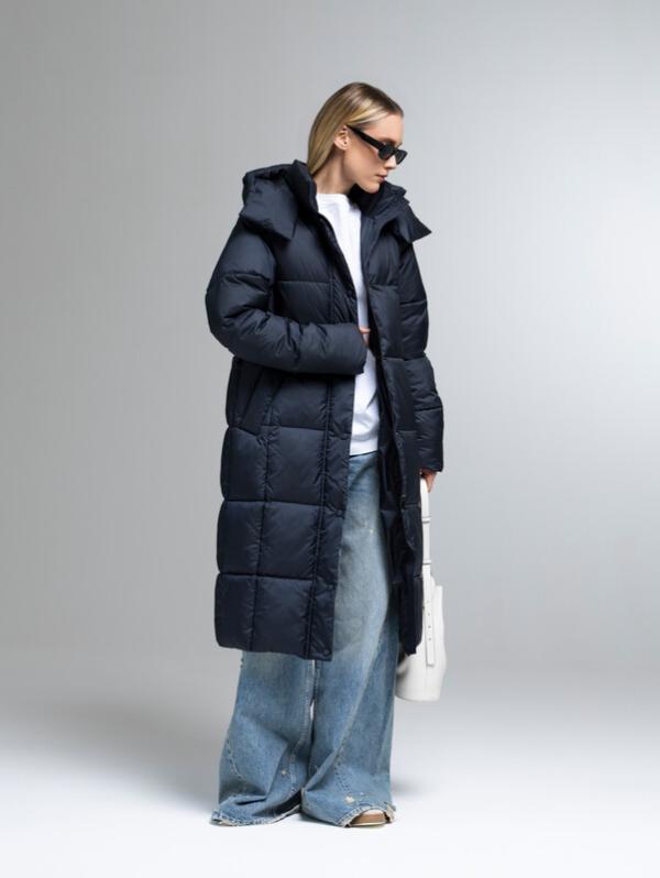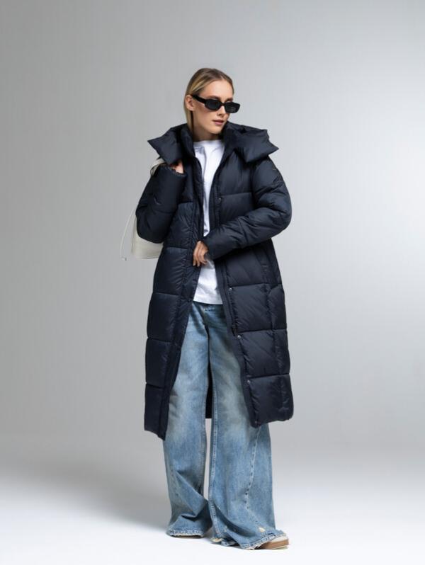 Пуховик женский темно-синий