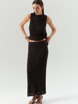 Юбка-лапша в тёмно-сером цвете. Модель на плотной широкой резинке отлично садится по фигуре. Подходит для демисезонных образов. Выполнен из приятного к телу вискозного трикотажа с добавлением нейлона для лучшей посадки и большей прочности. Модель с проймой комфортной глубины может использоваться как верхний слой. Завершить образ с топом можно юбкой из комплекта.