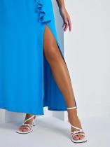 Платье длины макси с разрезом по переду.