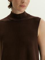 Трикотажный топ в шоколадном цвете — идеальный вариант на каждый день, который удобно носить соло и под жакеты. Незаменим в демисезонных и зимних капсулах. Удлинённая модель с высоким воротом, особенно в комплекте с брюками высокой посадки, защищает от холода все важные точки. Топ красиво садится по фигуре за счёт оптимального баланса между свободой и лёгким уклоном в приталенность