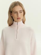 Мягкий свитер с воротником на молнии отлично подойдёт для любых повседневных дел. Регулируемая высота воротника или глубина выреза даёт ещё больше комфорта. Свитер хорошо держит форму после стирок, не линяет и хорошо ощущается на теле благодаря своему составу. Долговечен и прост в уходе. Выполнен с высоким содержанием вискозы и добавлением нейлона. Розовый цвет хорошо сочетается с коричневым, хаки, золотистым, кофейным и бежевым. Лучшей парой к свитеру станет трендовый деним.