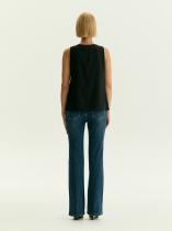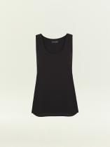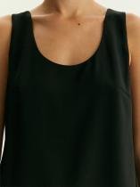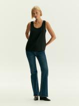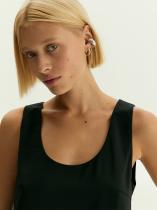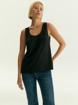 Чёрный топ с U-вырезом смотрится актуально и стильно. Модель без застёжек в меру свободна, не стесняет движений, удобна под жакеты и без них. Топ сделан на подкладке.