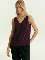 Стильный топ в цвете инжира разбавит повседневные образы модным цветовым акцентом. Этот оттенок решает сразу три задачи в образе: делает его дорогим и благородным, держит вровень с трендами сезона, встраивает в деловой дресс-код с сохранением индивидуального стиля. Топ удобен для того, чтобы носить его под жакеты. Имеет проймы комфортной глубины. Прямая модель на широких бретелях дополнена универсальным V-вырезом. Топ сделан без подкладки.