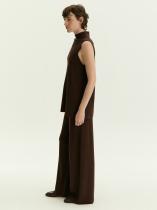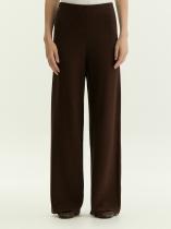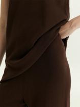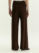 Вещь, которая сочетает в себе максимальный комфорт и элегантность. Трикотажные брюки в шоколадном цвете — идеальный вариант низа на каждый день. Незаменимы в демисезонных и зимних капсулах. Прямая и слегка подстреленная модель смотрится очень актуально. Высокая посадка при эластичном поясе — стильное и комфортное решение. Брюки не стесняют движений, удобно и красиво садятся по фигуре. Мягкий трикотаж плотной вязки сделан из вискозы с эластаном. Брюки удачно завершат образ с топом из комплекта или другим базовым трикотажем.