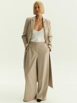 Стильные брюки в офис и для нерабочих планов. Модель широкого кроя и полной длины с высокой посадкой смотрится актуально. Имеет практичные карманы по бокам. Брюки выполнены в универсальном молочно-бежевом оттенке и украшены тонкой полоской. Один из главных принтов сезона не теряет актуальность, смотрится элегантно и уместен в деловом гардеробе. В составе материала — дышащая вискоза и эластан для ещё более комфорной посадки. Завершить образ можно платьем-жакетом из комплекта или другим верхом по вкусу.