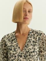 Шифоновое платье для тех, кто ценит благородную простоту. Россыпь некрупных цветков цвета осветлённых чернил на пергаментном фоне придаёт образу трогательную нежность с ноткой модной ностальгичности. Рукава-крылья и женственный штрих в виде вытачек под грудью добавляют романтичности. V-вырез умеренной глубины и всегда корректная длина миди уместны в самых разных случаях. Модель не облегает, но обрисовывает фигуру. Хорошо подойдёт на средний объём груди. Прикрывает плечи. Платье сделано на хлопковой подкладке — ощущается очень комфортно.