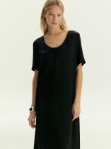 Лаконичное платье миди с коротким рукавом и U-образным вырезом захочется носить на любой случай. Для выхода на массаж и в бассейн, по магазинам и на прогулку, на работу и за город, для романтических планов и культурных событий — для этого платья любой повод хорош. Благодаря длине, универсальному фасону и монохромному цветовому решению оно уместно всегда. Оно позволяет экспериментировать с броскими аксессуарами или, наоборот, уйти в минимализм. Умеренно свободное платье садится на любую фигуру. Сделано из комфортной вискозы, без подкладки.