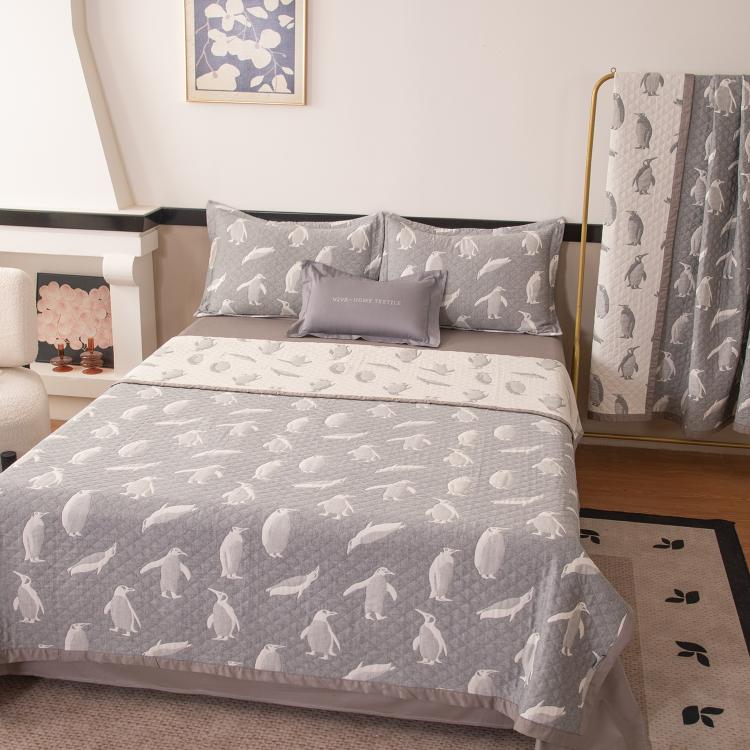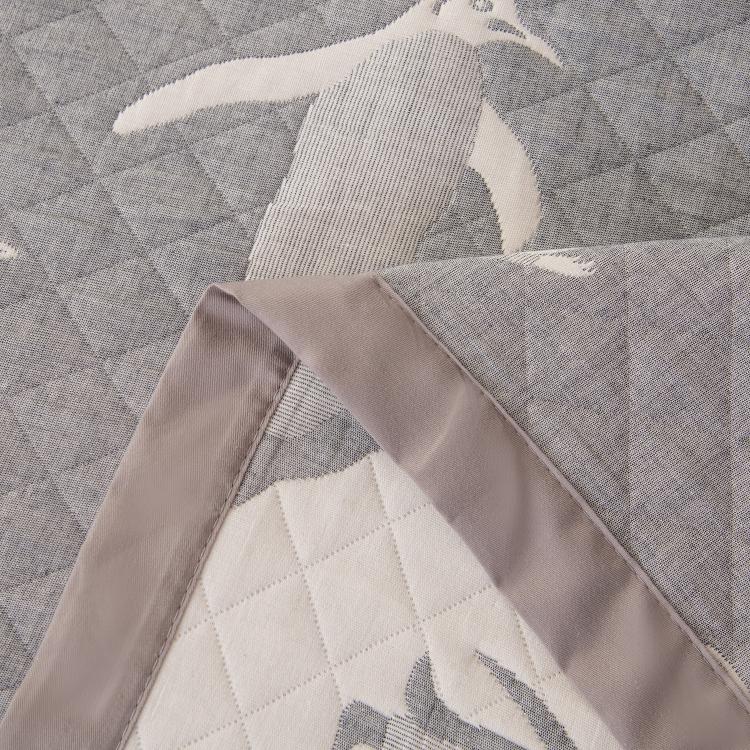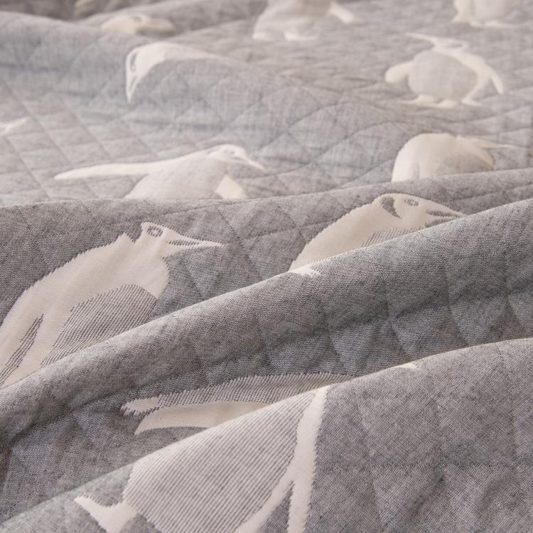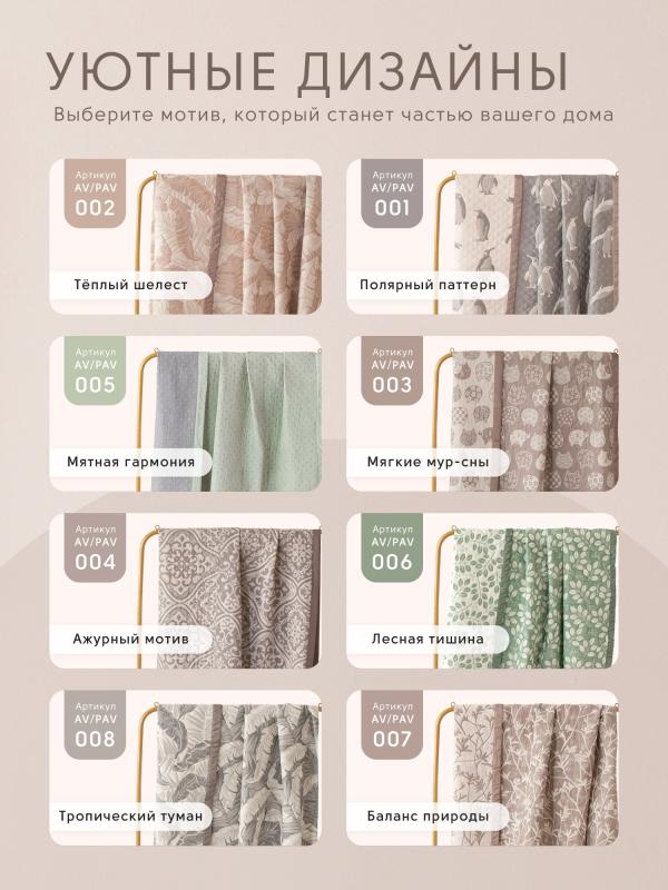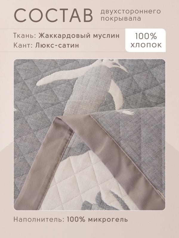 Ткань компаньон: Покрывало двустороннее с инверсией рисунка. Ткань: Жаккардовый муслин Состав: 100% хлопок Покрывало: 100% эковолокно микрогель (наполнитель) Упаковка: ПВХ-сумка с ручками