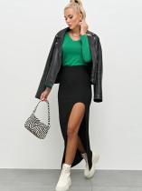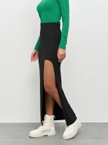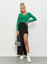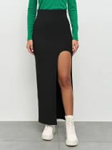 В боковом шве-высокий фигурный разрез.