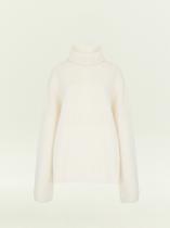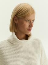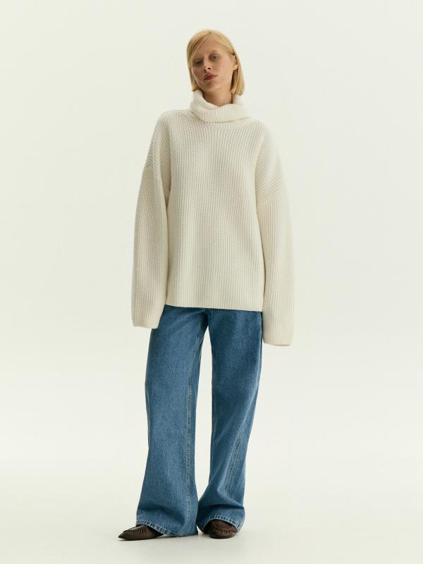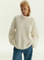 Свитер в молочном цвете для ценителей уютной эстетики. Сделан из мягкой шерсти с добавлением нейлона для большей прочности и лёгкости. Не колется, комфортно ощущается на теле. Модель имеет высокую объемную горловину и удлинённые спущенные рукава.