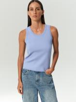 Комфортный топ из вискозы отлично садится по фигуре. Позволяет продемонстировать красивые плечи и ключицы. Станет основой множества повседневных образов. Сочетается с любым денимом, рубашками, жакетами любых фасонов. Выполнен в модном голубом цвете.