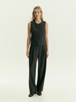 Брюки станут основой множества ансамблей. С ними можно создать и деловой образ, и праздничный. Модель отличают широкий пояс с потайной застёжкой и планкой сбоку, стильная завышенная посадка и широкий крой. Плотная и мягкая костюмная поливискоза не мнётся, хорошо держит форму, при движении ложится красивыми мягкими складками. Изделие выполнено без подкладки. Завершить образ можно жилетом из комплекта или женственной атласной блузой.