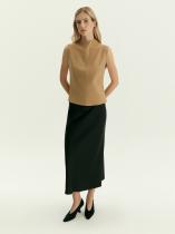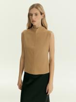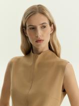 Необычный топ из очень мягкого, приятного на ощупь трикотажа в телесно-бежевом цвете станет отличным вариантом на каждый день. Приталенную модель без рукавов отличают цельнокроеный воротник-стойка и акцентный шов. Изделие застёгиватся на молнию сзади. Выполнено из материала с высоким содержанием вискозы и добавлением эластана, без подкладки.