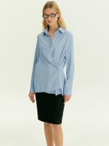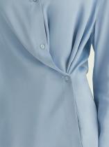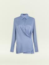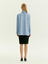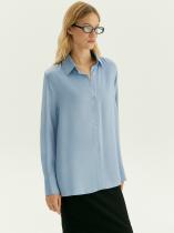 Однотонная сатиновая рубашка из комфортной вискозы для офисных и повседневных образов. Классическая модель с кокеткой на спинке подойдёт к любому базовому низу. Выполнена в трендовом голубом цвете.