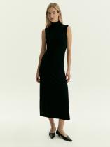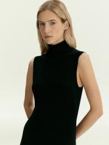 Незаменимая вещь для базового гардероба к межсезонью и зиме — вязаное платье мидакси без рукавов и с высоким горлом. Ворот защищает горло, а удобные глубокие проймы идеальны для образов с жакетами, кардиганами и верхней одеждой. Приталенная модель красиво садится по фигуре, воротник изящно охватывает шею. Мягкий материал тонкой вязки сделан на основе комфортной к телу вискозы. Платье в чёрном цвете универсально и имеет широкую сочетаемость. Подходит на каждый день и для особых случаев. За счёт своей лаконичности позволяет экспериментировать с акцентными аксессуарами и яркой помадой.