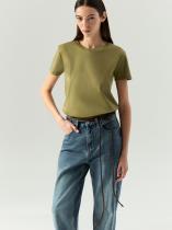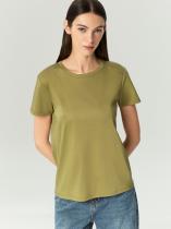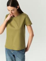 Базовая трикотажная футболка цвета хаки. Выполнена из натурального хлопка. Модель прямого силуэта с круглым вырезом станет основой множества комфортных повседневных образов. Отлично сочетается с денимом.