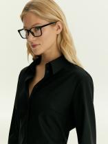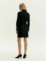 Повседневное платье-рубашка в чёрном цвете заинтриговывает необычным решением — сзади оно выглядит как комплект из рубашки с юбкой. Приталенная модель с вытачками спереди и напуском сзади имеет длину чуть выше колена. Тонкий, но тёплый костюмный материал на четверть состоит из шерсти, выполнен с содержанием вискозы и добавлением эластана. Это идеальный вариант на демисезон и не только. Платье может стать частью капсулы с юбкой, брюками и жилетом urgel.