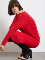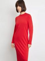 Трикотажное платье красного цвета отлично впишется в повседневный гардероб. В меру свободное, с длинными рукавами и круглым вырезом, оно не стесняет движений и комфортно ощущается на теле. Платье выполнено из материала с высоким содержанием дышащей и мягкой вискозы: материал хорошо подходит на демисезон.