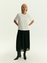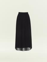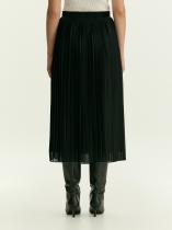 Плиссированная юбка цвета из чёрного шифона внесёт в образ немного романтики. Выполнена на подкладке. Модель А-силуэта имеет высокую посадку. Застёгивается на потайную молнию на спинке. С юбкой сочетается любой однотонный верх: классические рубашки и блузки, трикотажные футболки и атласные топы.
