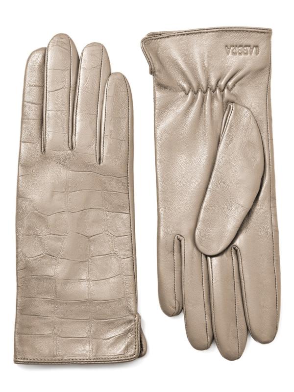 Перчатки женские торговой марки LABBRA из высококачественной кожи ягненка на подкладе из нежного шелка. Изделие дополнено трендовой отделкой - тиснением под крокодила. Модель со средней длиной пальцев и длиной манжеты от нижней точки большого пальца до края перчаток - 6 см.