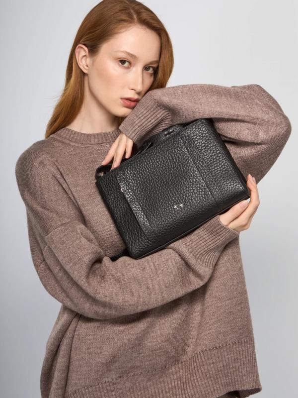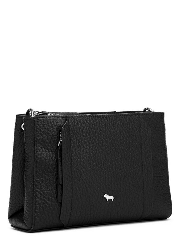 Женская сумка торговой марки Labbra из натуральной кожи. Модель имеет два самостоятельных отделения, которые закрываются на металлические молнии. Заднее отделение внутри содержит карман на молнии. Переднее отделение внутри содержит два открытых кармана. На передней стенке - карман на молнии. Длина наплечного ремня из натуральной кожи - 118 см., ширина - 1,8 см. Модель не имеет ножки на дне.