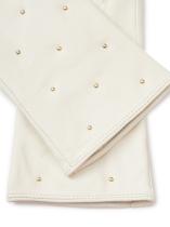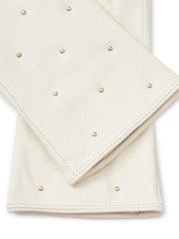 Перчатки женские торговой марки LABBRA из высококачественной кожи ягненка на подкладе из искусственного шелка. Модель-бестселлер, завоевавшая любовь покупателей. Изделие выполнено в новом, актуальном в этом сезоне белом цвете, и дополнено золотыми хольнитенами. Модель со средней длиной пальцев и длиной манжеты от нижней точки большого пальца до края перчаток - 5,5 см.