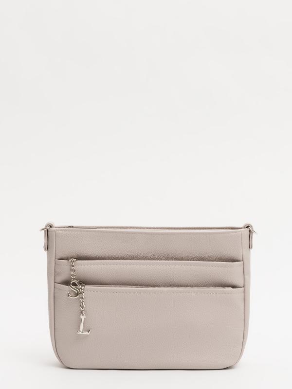 Кросс-боди габарита М — функциональный минимализм с фирменным акцентом. Прямоугольная форма с тремя внешними карманами на молнии (2 спереди, 1 сзади) и металлическим логотипом