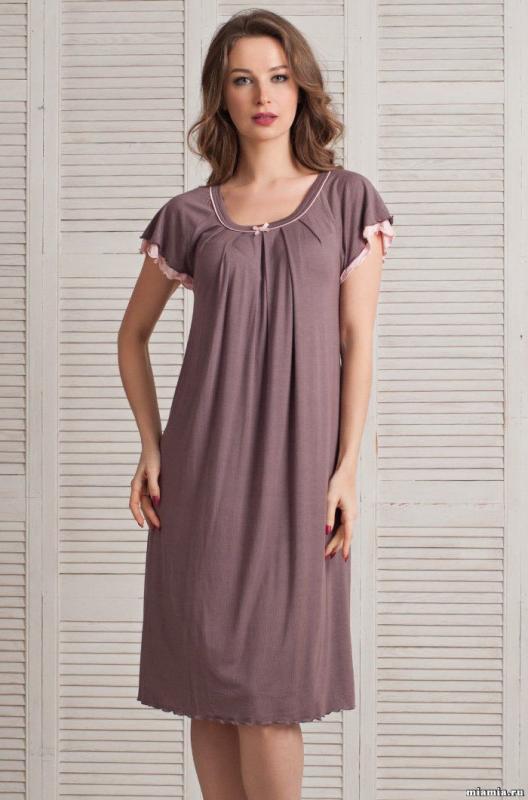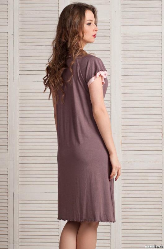 Комбинация Mia-Mella 6608 Milena Длинная сорочка Mia-Mella свободного силуэта с коротким рукавом выполнена из принтованного вискозного трикотажного полотна. Вырез горловины декорирован тонким кантом и декоративным бантиком. Спереди по горловине заложены складки. Состав вискоза 95% эластан 5%
