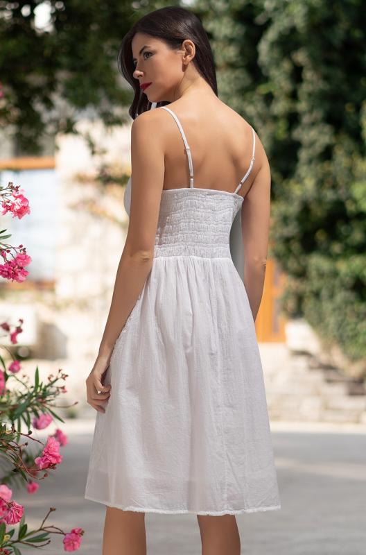 Сарафан Mia-Amore 1752 Argentina Сарафан средней длины Mia-Amore на тонких бретелях из хлопкового полотна. Полочка украшена разнообразными защипами. Верх спинки собран за счет эластичных строчек. Нижняя часть сарафана на подкладке.