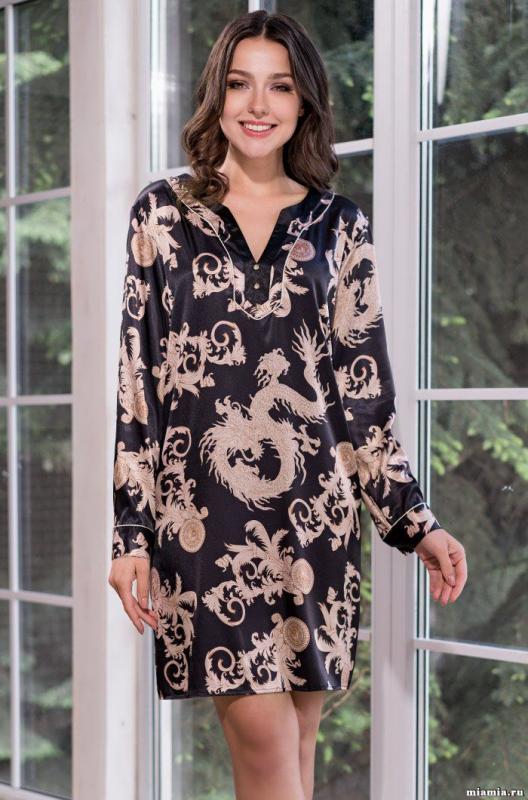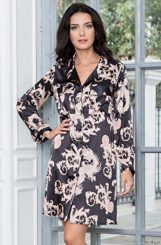 Сорочка Mia-Amore 9935 Versachi_Gold Длинная сорочка Mia-Amore с рельефами выполнена из принтованного искусственного шелка. Лиф сорочки декорирован тонким кремовым кружевом и изящной подвеской по центру.