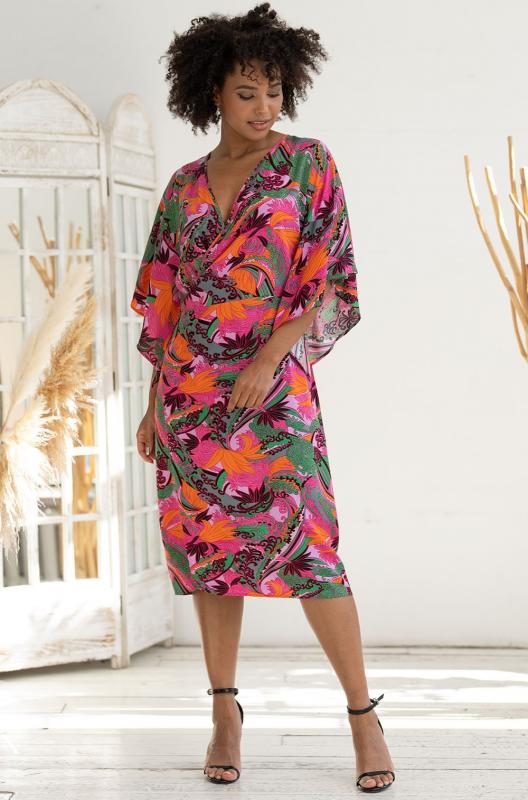 Халат Mia-Amore 5269 Havana Пляжный запашной халат-кимоно на завязках Mia-Amore с широким рукавом, выполнен из вискозы с ярким принтом.