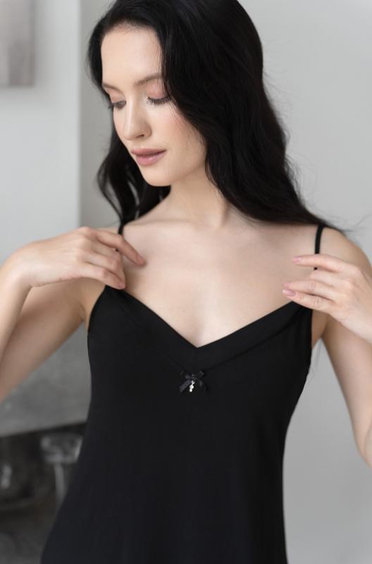 Комбинация Mia-Amore 7121 Manuella Короткая сорочка Mia-Amore на тонких бретелях выполнена из черногоискусственного шелка. Лиф декорирован принтованной отделкой из основной ткани капсулы, на спинке соблазнительный V-образный соблазнительный вырез.