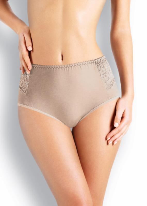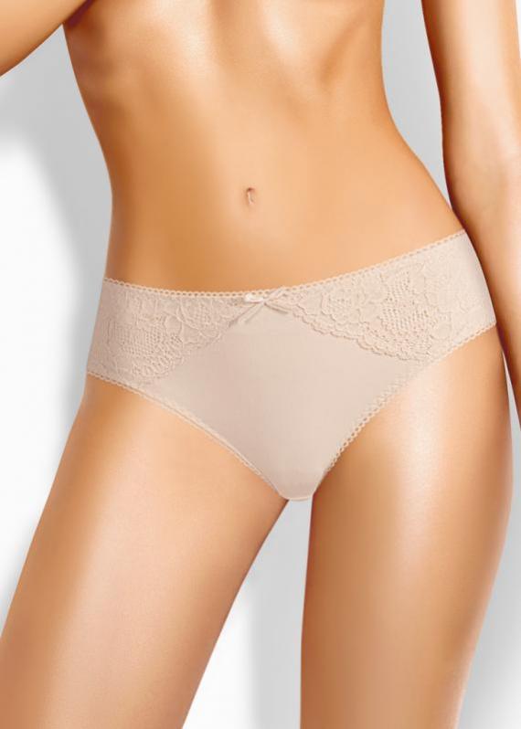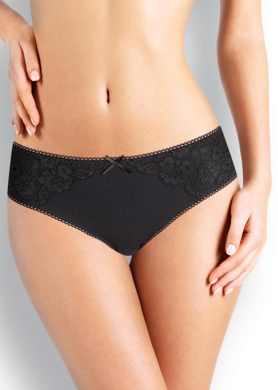 Трусы-слипы женские из эластичного хлопкового полотна. Обработка краев - ажурная резинка с фестоном. По переду бант и настрачивается кружево.