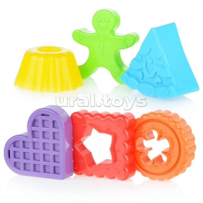 • Шесть разноцветных формочек из песочного набора «Сладости» могут занять ребенка в песочнице надолго.