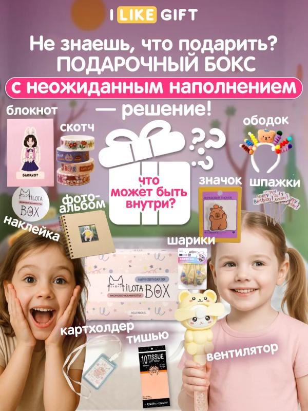 Каждая коробочка милоты наполнена необычными вещицами, которыми будет приятно пользоваться в повседневной жизни: милая канцелярия, уютные товары для дома, стильные аксессуары, предметы для здорового образа жизни и приятные мелочи. Внутри Milota BOX находится до 8 сюрпризов, упакованных в стилизованную подарочную бумагу тишью. Коробочка из плотного, дизайнерского картона. Размер коробочки: 22 х 14 х 9 см. Общий вес: 550 гр.