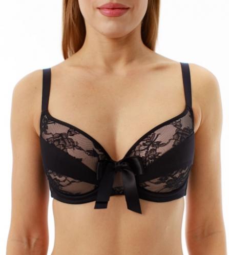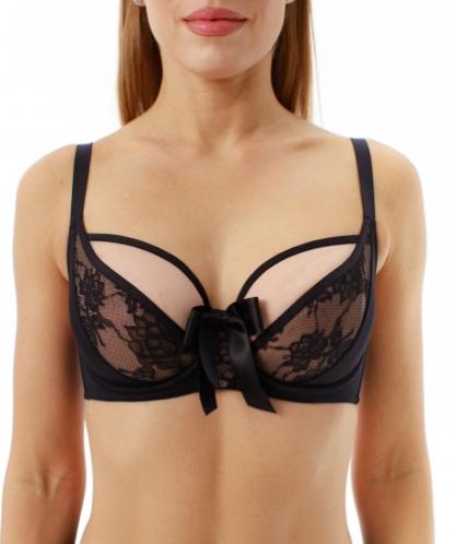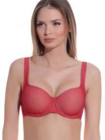 80% ПОЛИАМИД- 20% ЭЛАСТАН Бюстгальтер на каркасах с бесшовными формованными чашками из 3D материала Spacer (Спейсер). Под термином «Spacer» понимается очень легкий и дышащий материал, приятный на ощупь, прекрасно держащий форму. Чашки обтянуты эластичным сеткой и спереди чашка украшена элементами ввиде крыльев из кружева , Украшение металлический медальон с логотипом COQUETTE REVUE.
