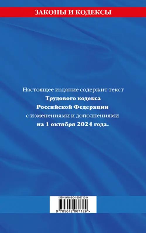 Настоящее издание содержит текст Трудового кодекса Российской Федерации в редакции, действующей на 1 октября 2024. В данной книге приводится вся актуальная информация на дату подписания издания в печать.