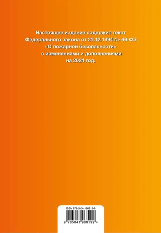 Настоящее издание содержит текст Федерального закона 21.12.1994 № 69-ФЗ «О пожарной безопасности» с изменениями и дополнениями на 2024 год. К изменениям, вступающим в силу позднее, вместе с редакцией нормы, действующей на эту дату, приводится норма в новой редакции и указывается дата, с которой она вступает в силу. В данной книге содержится вся актуальная информация на дату подписания издания в печать.