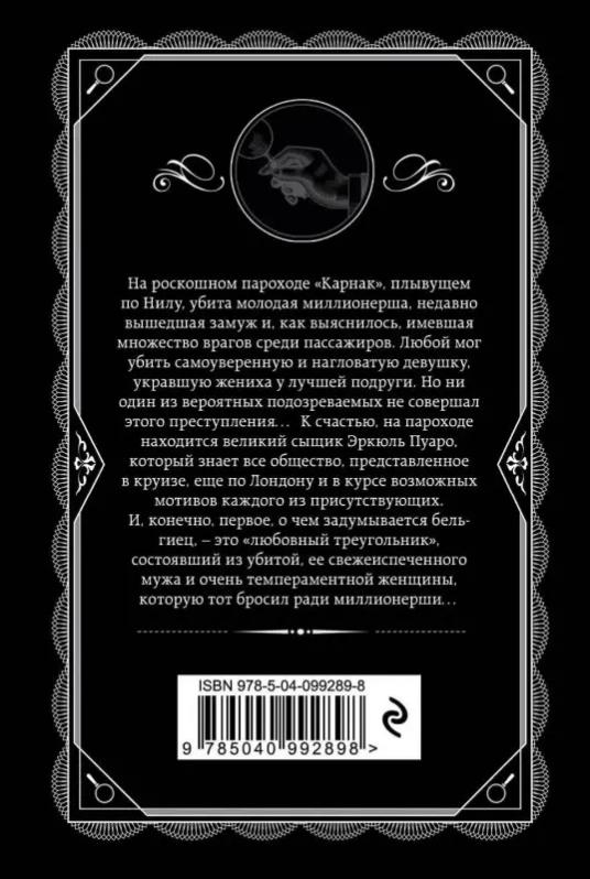 Этот роман является прямым продолжением «Убийства в “Восточном экспрессе”» — и практически ничем не уступает «детективу всех времен и народов». Агата Кристи — самый публикуемый автор всех времен и народов после Шекспира. Тиражи ее книг уступают только тиражам его произведений и Библии. В мире продано больше миллиарда книг Кристи на английском языке и столько же — на других языках. Она автор восьмидесяти детективных романов и сборников рассказов, двадцати пьес, двух книг воспоминаний и шести психологических романов, написанных под псевдонимом Мэри Уэстмакотт. Ее персонажи Эркюль Пуаро и мисс Марпл навсегда стали образцовыми героями остросюжетного жанра. На роскошном пароходе «Карнак», плывущем по Нилу, убита молодая миллионерша, недавно вышедшая замуж и, как выяснилось, имевшая множество врагов среди пассажиров. Любой мог убить самоуверенную и нагловатую девушку, укравшую жениха у лучшей подруги. Но ни один из вероятных подозреваемых не совершал этого преступления… К счастью, на пароходе находится великий сыщ