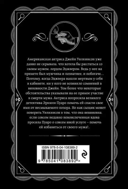 Американская актриса Джейн Уилкинсон уже давно не скрывала, что хотела бы расстаться со своим мужем, лордом Эджвером. Ведь у нее на примете был мужчина и познатнее, и побогаче… Поэтому, когда Эджвера нашли мертвым у себя в кабинете, ни у кого не возникло сомнений в виновности Джейн. Тем более что некоторые обстоятельства указывали на ее прямое участие в смерти мужа. Актриса попросила великого детектива Эркюля Пуаро помочь ей спасти свое имя от несмываемого позора. Но как сыщик может поверить Уилкинсон в том, что она невиновна, если совсем недавно новоиспеченная вдова просила Пуаро о совсем иной услуге – помочь ей избавиться от своего мужа?..