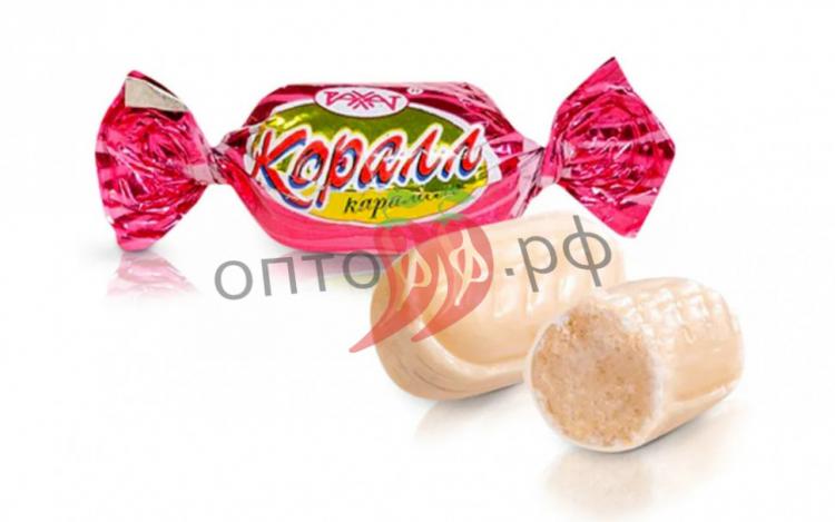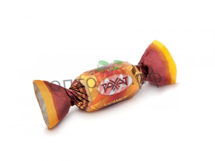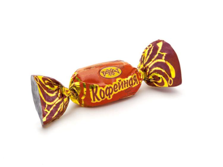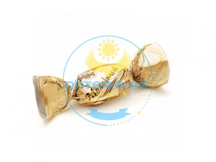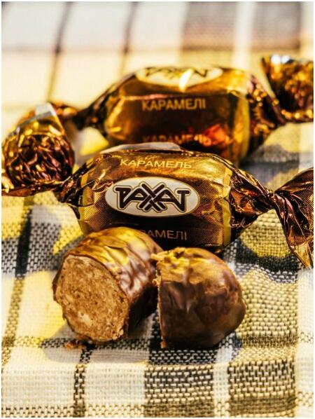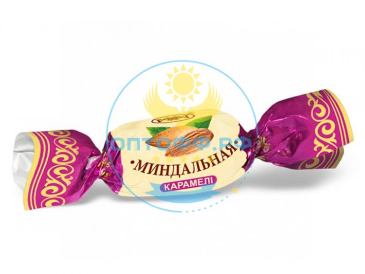 Карамель с пралиновой начинкой с добавлением ореха миндаля и какао порошка.