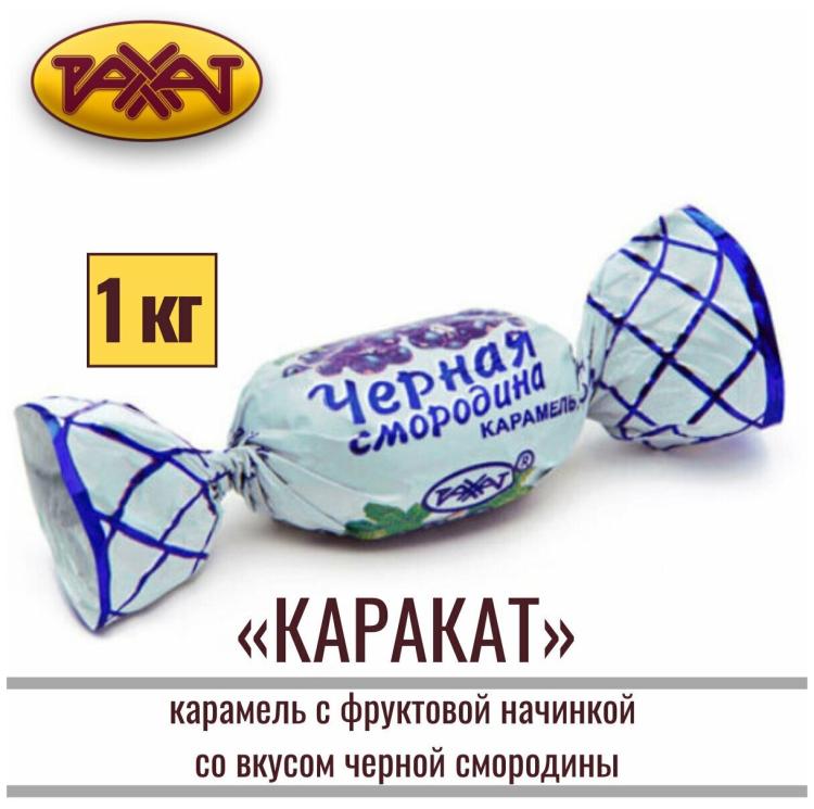 Карамель с фруктовой начинкой со вкусом черной смородины.