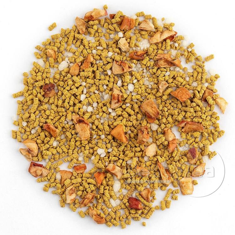 Смесь крупнолистового черного цейлонского и китайского чая, кусочки яблок и апельсина, корица, кориандр, семяна кардамона, гвоздика. Ароматизирован натуральными маслами.