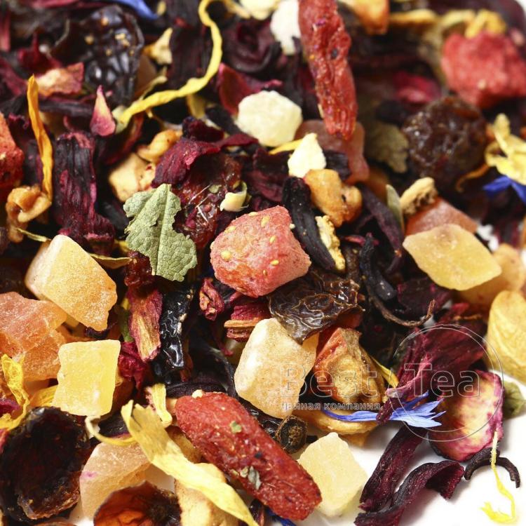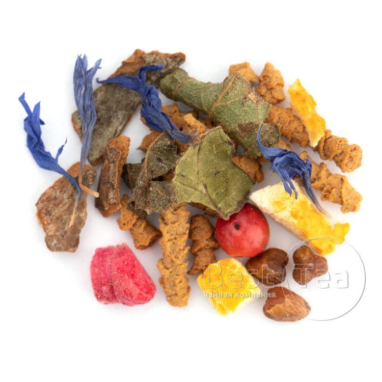В сезон заболеваний данный витаминный фиточай идеально подойдет источник восполнения недостающих активных веществ, поддерживающих здоровье организма. Данный напиток способен активизировать и усилить защитные функции, улучшить внутренние процессы для восстановления, снять перенапряжение и стресс. Данный напиток рекомендуется употреблять людям с ослабленным иммунитетом для профилактики заболеваний. Ценные травы насыщает организм огромным количеством витаминов и макро-микроэлементов, оказывающих бактерицидное, противовирусное действие. При регулярном употреблении данного фиточая наблюдается прилив энергии и бодрости, сокращается время на восстановление сил. В целом организм укрепляется. Состав - плоды боярышника, листья ежевики, плоды шиповника измельченные, листья смородины, плоды барбариса.