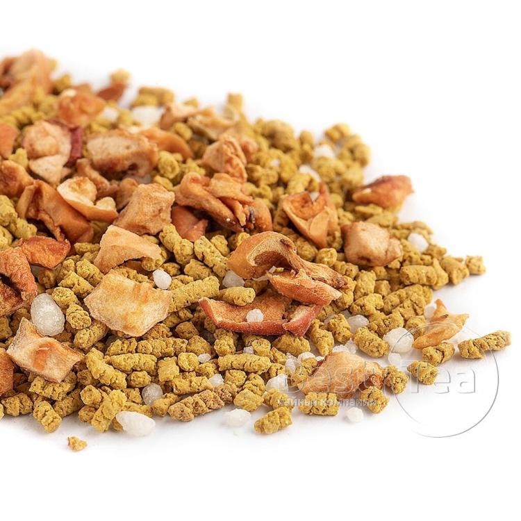 Простое и одновременно таинственное сочетание лепестков календулы и зеленого китайского среднелистового чая. Кусочки ананаса и яблока добавляют особое вкусовое разнообразие. Продолговатые листья чая в сочетании с жёлтой календулой такой же формы стройно впишутся в мировосприятие эстета. Чай прекрасно подходит для утренней и вечерней церемонии, создает особое настроение и дружелюбную атмосферу. Янтарный тон с нотками золота наполнит тело и разум полным упоением. Состав: Чай зеленый китайский, ананас кусочки, яблоко кусочки, лепестки календулы, аромат саусепа. Количество чая: 2 чайные ложки Объем и температура воды: 450 мл., 90-98 С Время заваривания: 2-5 минут