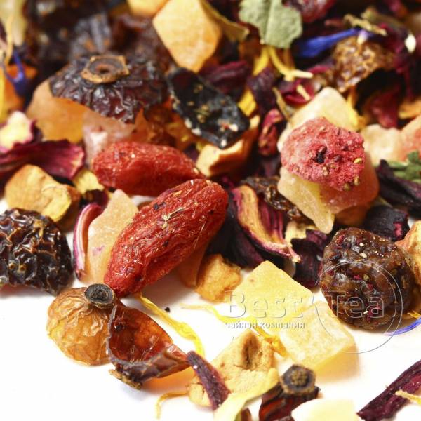 Ананас Апельсин Василек Годжи Изюм Календула Каркадэ Клубника Папайя Смородина лист Шиповник Яблоко