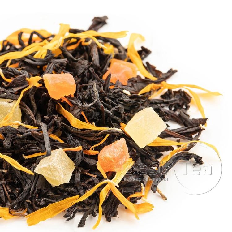 Загадочное и манящее созвучие смеси черныхчаев и хитросплетений вкусов кусочков ананаса и папайи, лепестков василька,розы и календулы отлично сочетается с источаемым ароматомкрасного персика.
