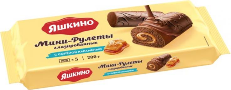 Бисквитный мини-рулет украшен глазурью.