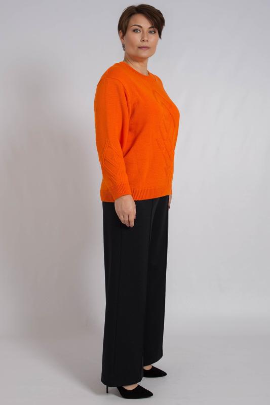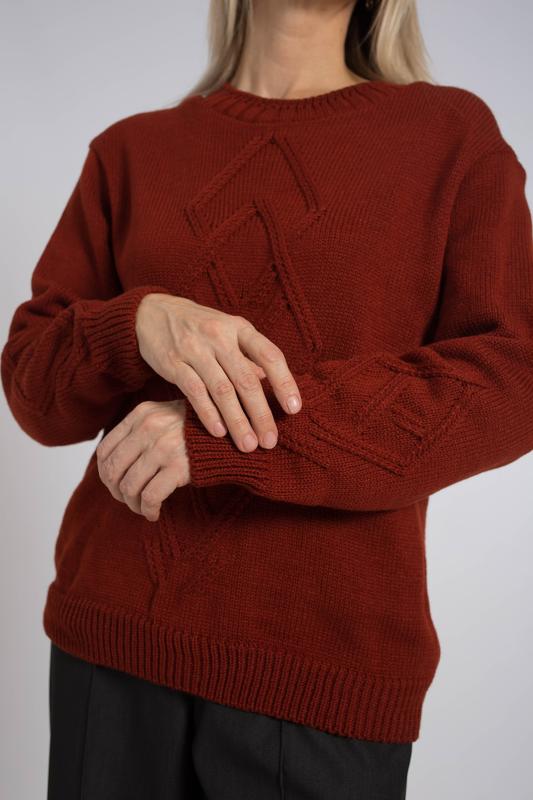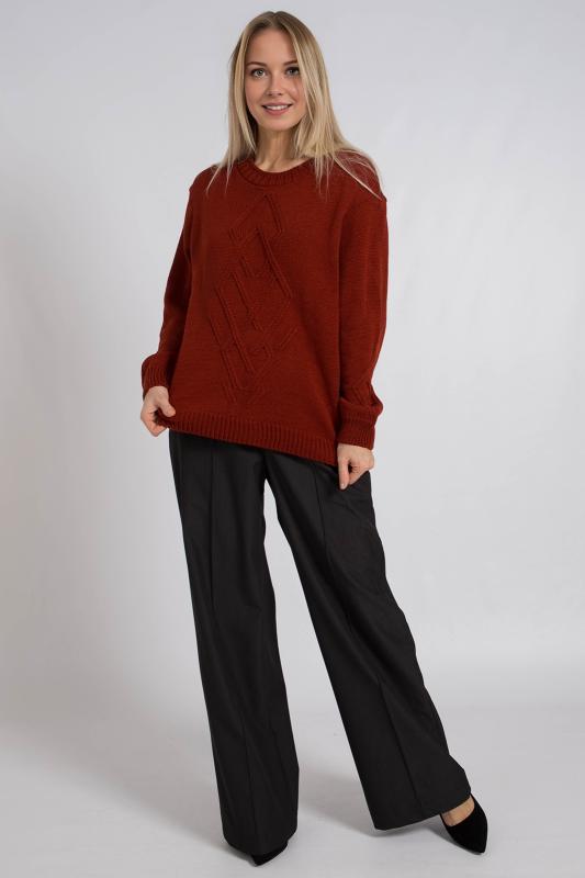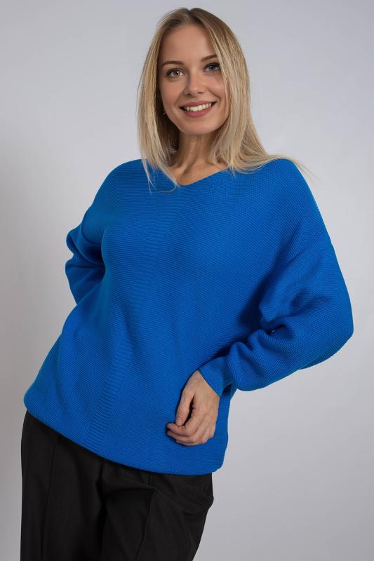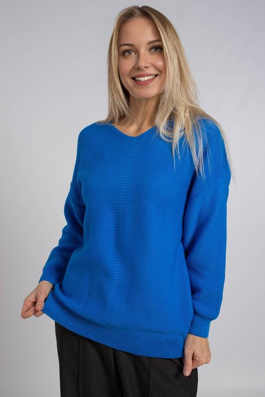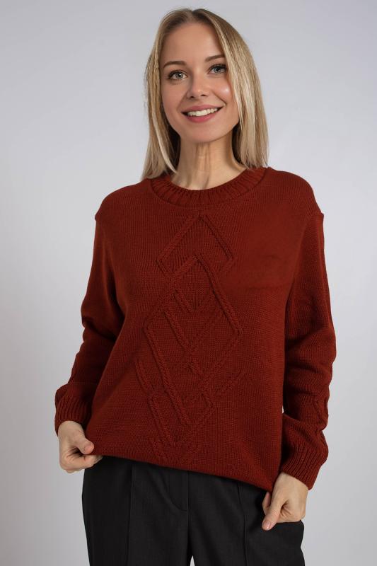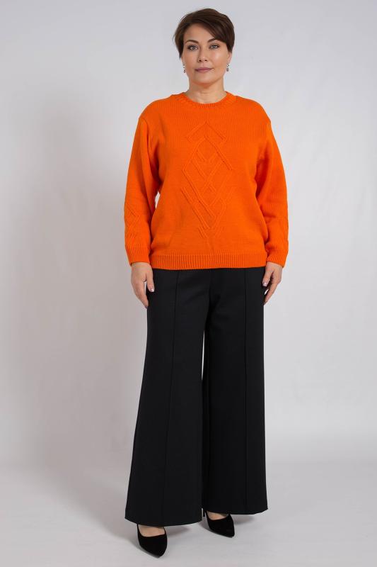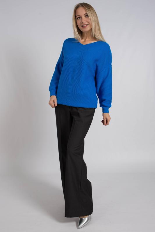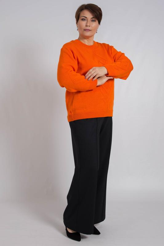 Базовый женский джемпер, связанный красивым переплетением. Джемпер умеренного объема, средней длины, с длинными рукавами рубашечного покроя, с фигурным вырезом горловины. Стильный и модный, этот однотонный джемпер подойдет как для повседневного использования, так и для офисного образа, гармонично дополняя ваш гардероб.